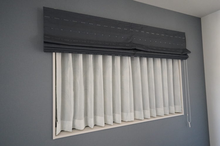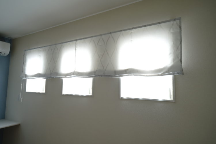 3連窓をプレーンシェードでカバーしてレースは窓それぞれにお取付け