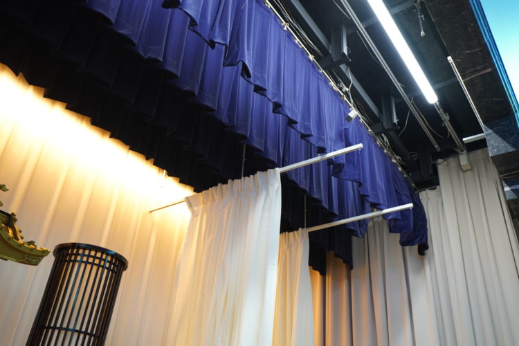 祭壇の幅に合わせてサイド幕で調整できるように、既存のサイド幕の手間に2本新たにサイド幕用のカーテンレールを新設