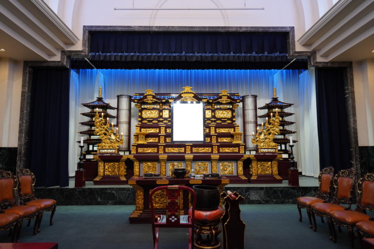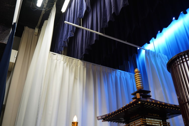 セレモニーホールの祭壇の舞台幕の取り替え