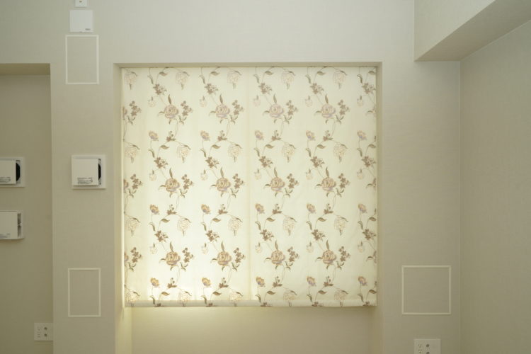 腰窓にはプレーンシェード、シアーカーテン