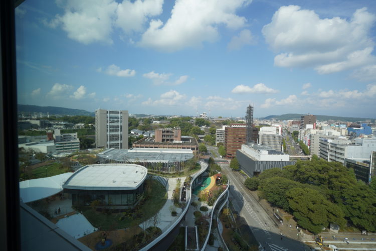 先月オープンしたサクラマチクマモトの施設内にあるマンションのお客様のお宅にカーテンを取り付けに行ってきました