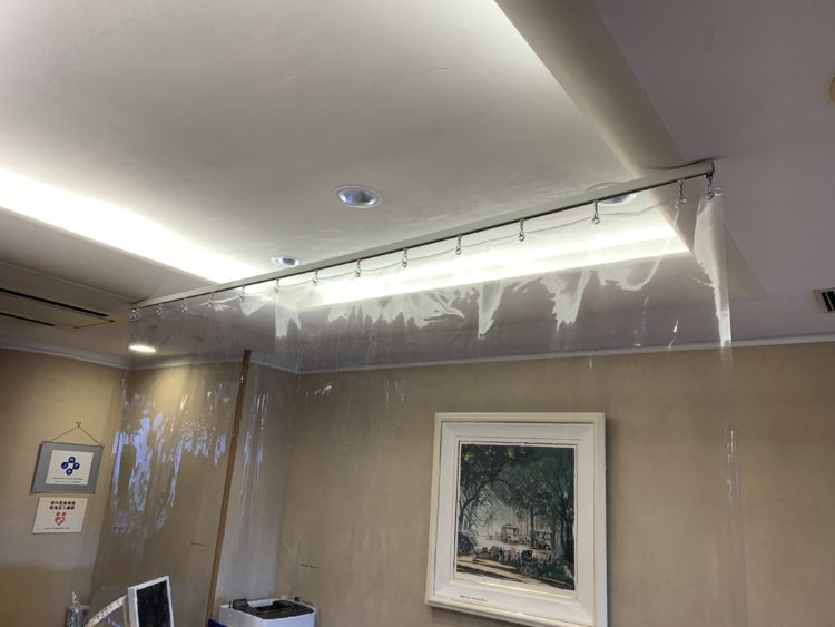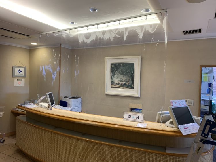 クリニックの受付カウンターに飛沫感染対策のビニールカーテンを取り付けさせていただきました。