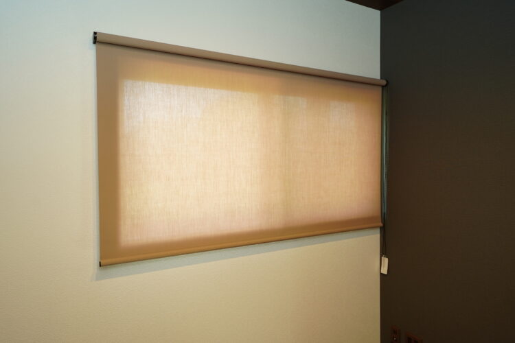 書斎のロールスクリーンもお部屋のトーンに合わせた生地で仕上げてます
