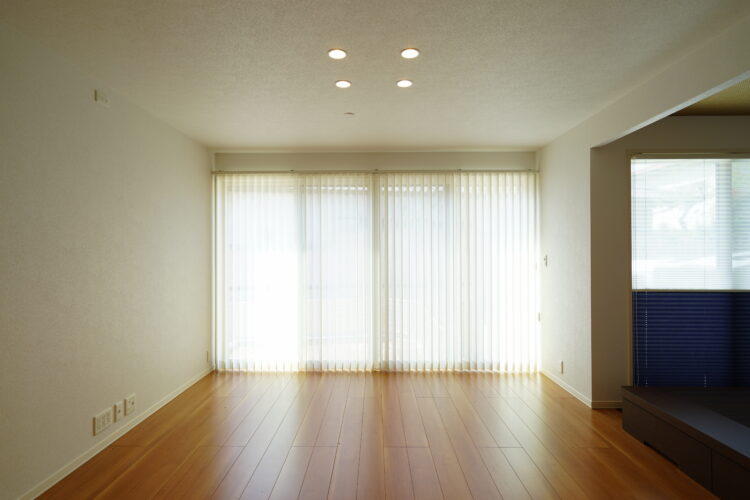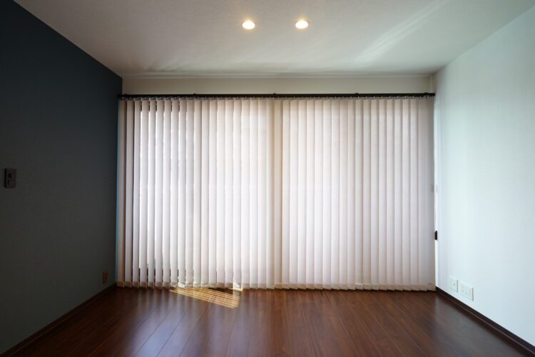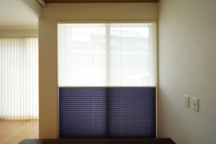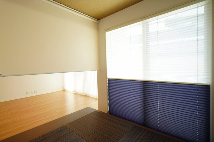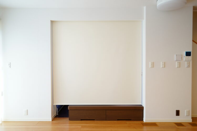 来客時などの目隠しに便利で、垂れ壁の裏に取り付けしてますので巻き上げ時はリビング側から見えなくなります。