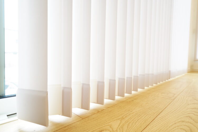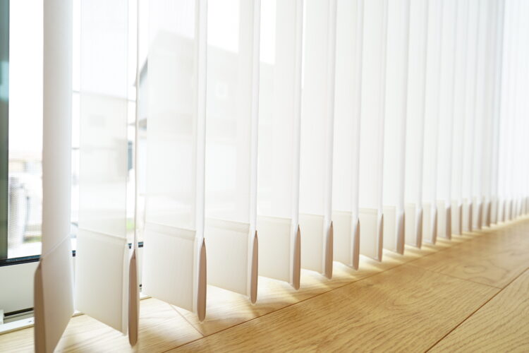 無垢材の床が印象的なナチュラルモダンな平屋のモデルハウスにカーテンをお取り付けさせていただきました。