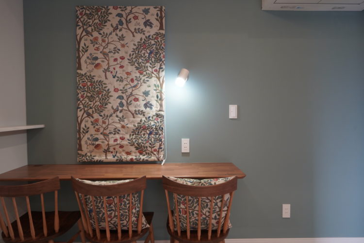 カーテンに合わせたウイリアムモリスの壁紙張り替えもできます