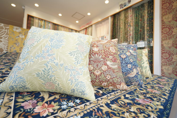また、期間中にウイリアムモリス生地のカーテンを10万円以上ご購入でのクッションを1個プレゼントさせていただきます。