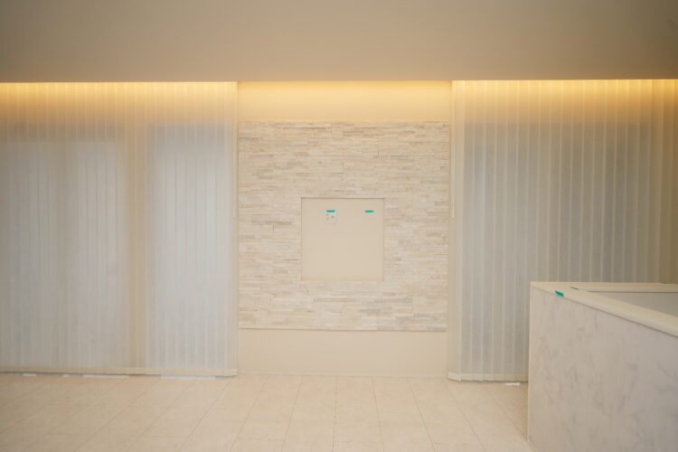 掘り込みの間接照明でさらに雰囲気アップしてます光を透す生地なので、これだけ大面にお取付けしても鬱陶しさが全く有りません