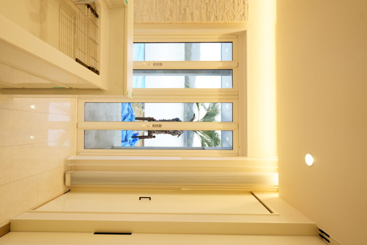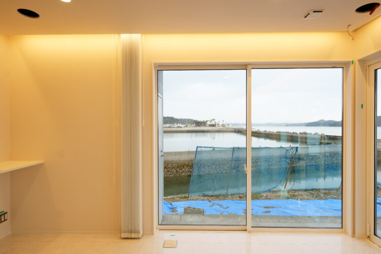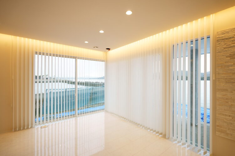 海に面したお宅のリビングに縦型ブラインドをお取付けさせて頂きました