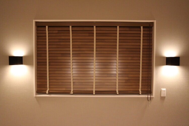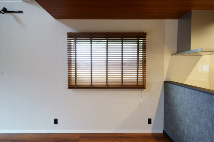 こちらのお宅は枠内にクレールグランツ(ニチベイ)スラットに穴のないタイプの木製ブラインド