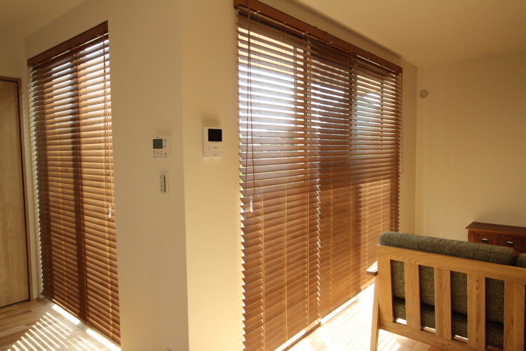 こちらのモデルハウスはバンブーブラインド(ニチベイ)竹の集成材のスラットで一般的な木製ブラインドよりコストを抑える事が出来ます