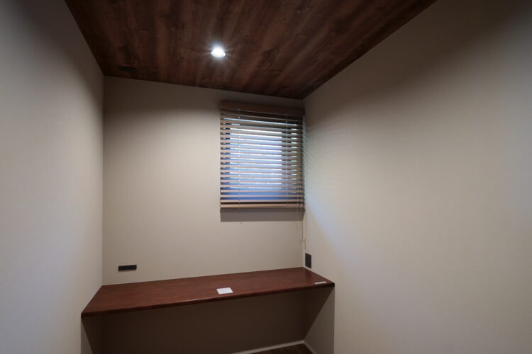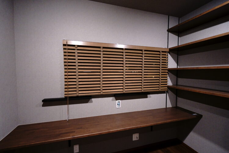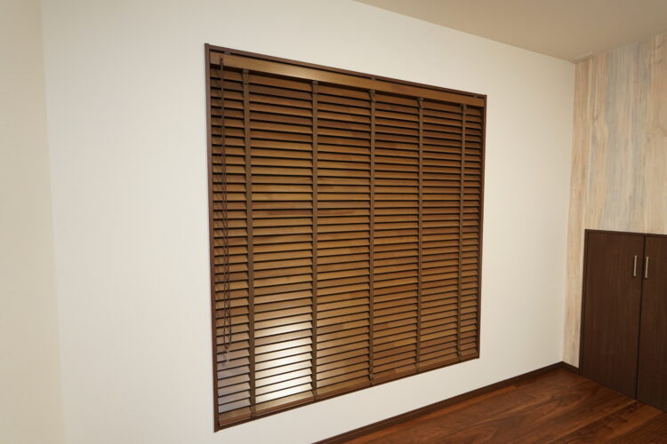 書斎趣味部屋の木製ブラインドは雰囲気アップに最適です